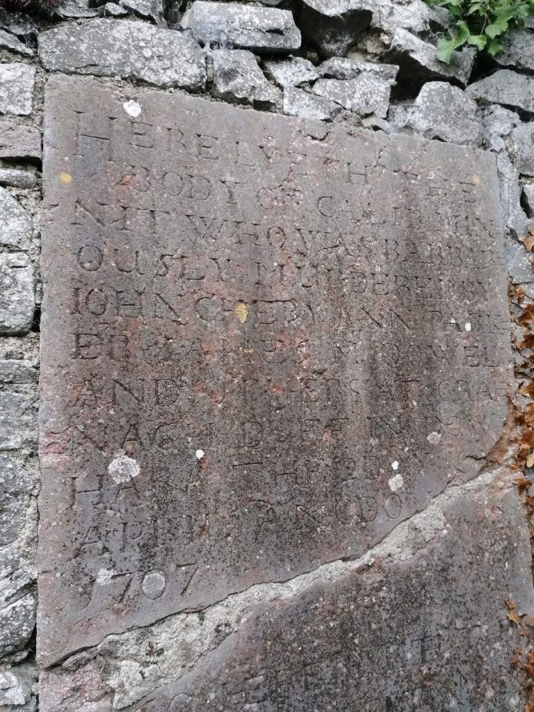 After a few Kilometers of cycling, we next arrived at the 15th Century Knigh church, to be met by Danny Grace. As with Monsea, this church was built by the O'Kennedy family who were then the major landowners in the area. Inside the church is the grave of one Calib Minnit, the son of a local landowning family (pictured below). On the grave it states that he was 'barbrously murdered' in 1707, and goes on to name his alleged killers. This is highly unusual, and Danny explained that Calib had a chequered past, including being accused of rape. His murder came after he refused to marry his girlfriend, Ann Parker (who is named on the grave), after getting her pregnant. She gave him once last chance to do the decent thing, and when he continued to refuse, he was set upon by her father's farm hands. The theory is that the reason they were named on the grave is that none of them ever faced a court of law, so this was the family's way of getting revenge.