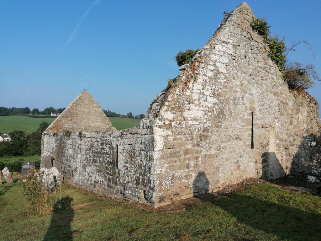 We next took to the back lanes through Prospect and Cloughprior to Killodiernan Church. This is a 12th Century building which includes a stone with 3 circles on it, said to represent the Holy Trinity. This is a very rarely seen design, and usually only appears on buildings from around the 6th century. Thus it is taken as evidence that there was a much older church there for several centuries before the current building.